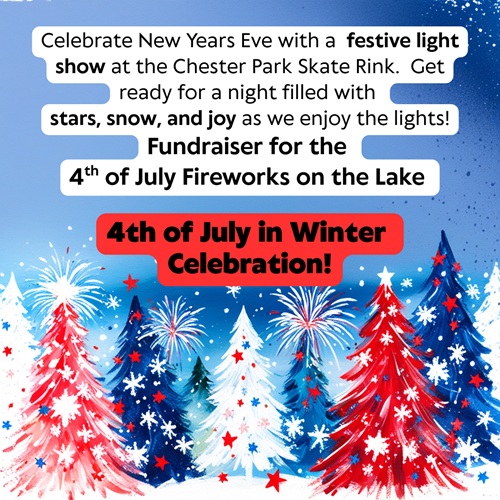 Celebrate New Years Eve with a festive light show at the Chest er Park Skate Rink. Get ready for a night filled with stars, snow, and joy as we enjoy the lights. 4pm – 9pm