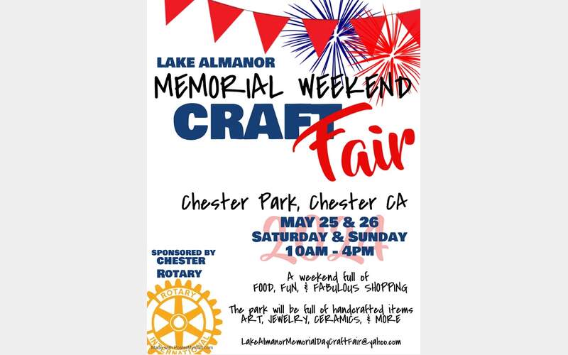 Lake Almanor Memorial Weekend Craft Fair, Chester Park. May 25 & 26 10 – 4pm