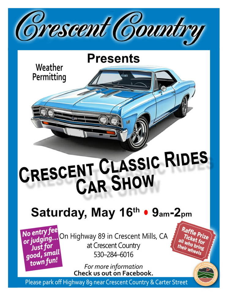 Crescent County will be hosting the Crescent Classic Rides Car Show on May 16th from 9am to 2pm. No entry fee or judging, just for good, small town fun. There will be raffles.