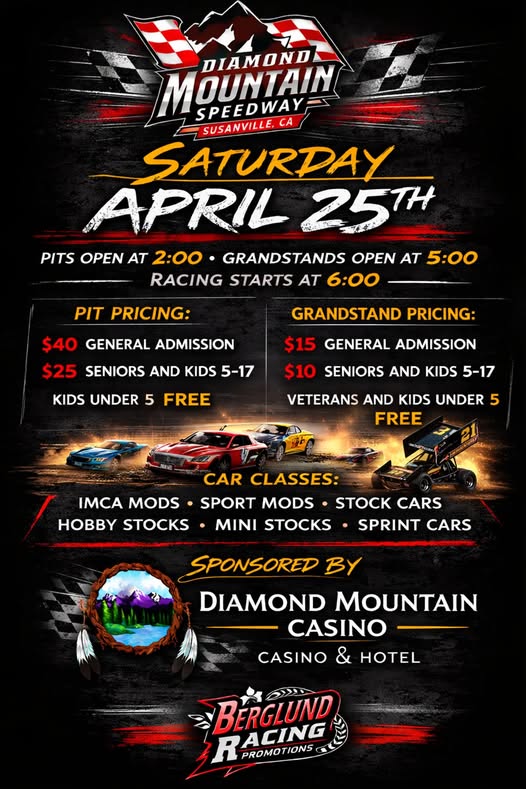 Saturday, April 25 Diamond Mountain Speedway Opening Day