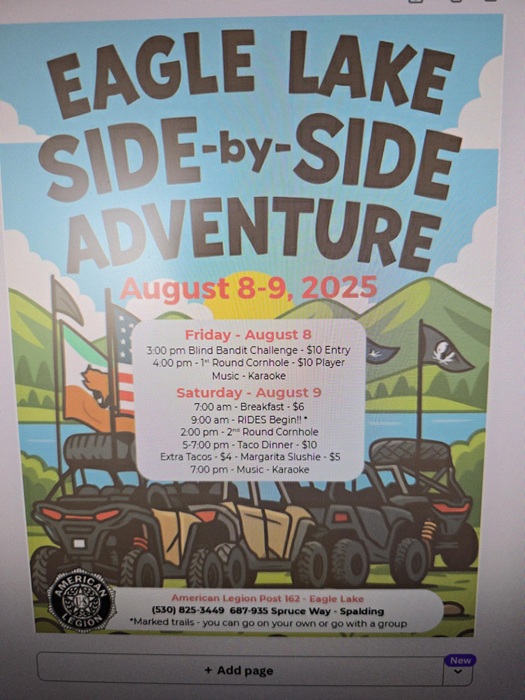 Join the American Legion in Spalding on Spruce Way Friday 3pm is the Blind Bandit Challenge and then CornHole Round 1 at 4. Music & Karache. Saturday 7am is breakfast and 9am ride begins. 2pm Cornhole round 2, taco dinner followed by music.
