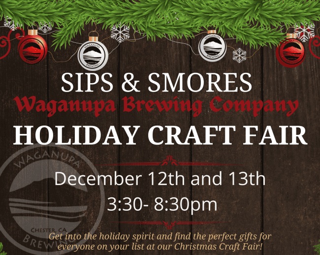 Friday & Saturday December 12 & 13 Sips and Smores Christmas Shopping at Waganupa December 12 and 13th 3:30-8:30pm Get your craft on with Sip and Smores, craft beer and crafty people. 401 Peninsula Drive, Lake Almanor