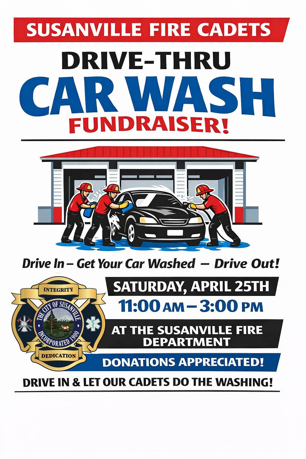 The Susanville Fire Cadets are hosting a unique drive-through car wash at the fire station, giving the community a chance to support a great cause while getting their vehicles cleaned. Residents can simply drive through the station as cadets handle the rest, showcasing their teamwork and dedication.