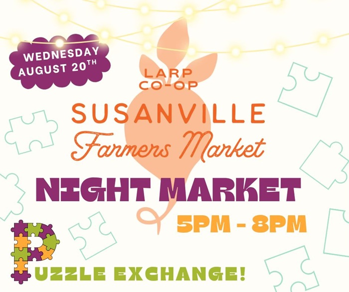 Swing on by the Wednesday Night Market on August 20th and hit the Puzzle Exchange tent, located next to the Market Info tent, bring your ticket(s), and pick up a new-to-you puzzle to enjoy! (If you cannot make it to the night market to complete your exchange, we will have left over puzzles available for pick-up at Margie’s Book Nook after the event as well)