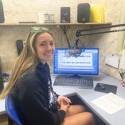 This week, Aryanna visited KJDX Radio Station in Susanville, CA to professionally record her ad. She was guided through the process by Ruth, a station team member who generously volunteered her time and expertise. Ruth worked side-by-side with the student, offering insight into voice recording, editing, and splicing techniques.