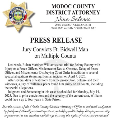 Jury Convicts Ft. Bidwell Man