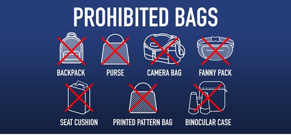 Without exception, all bags are subject to search and will be screened prior to entry, including medically necessary bags and diaper bags.