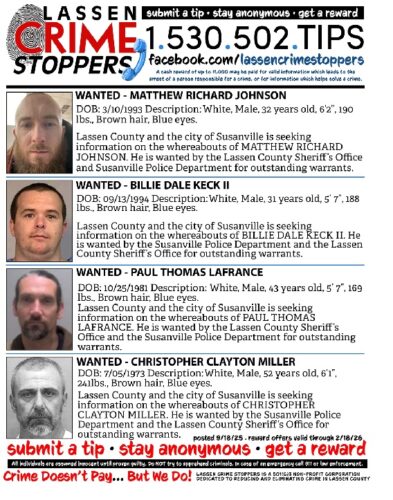 Lassen Crime Stoppers is partnering with Susanville Ace Hardware “Round up”. Susanville Ace Hardware will be supporting Lassen Crime Stoppers the month of September. Roundup helps make our community safer by offering cash rewards for tips that lead to arrest.