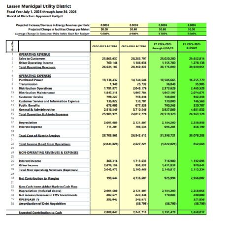 The Lassen Municipal Utility District Board of Directors approved a $30.1 million budget for fiscal year 2025-26 during their regular monthly meeting on Tuesday, June 24th. The budget includes significant investments in infrastructure improvements and reflects changing costs in the energy market.