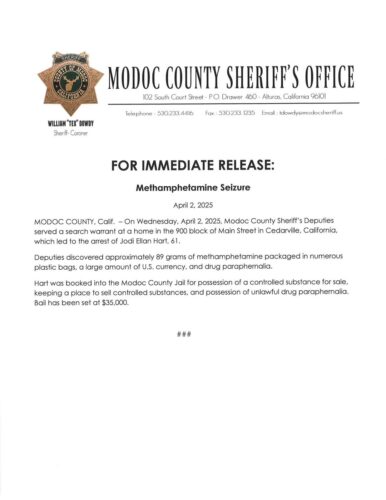 HomeLocalModoc Sheriff Drug BustModoc Sheriff Drug BustThu, April 3, 2025SHARE NOW Modoc Sheriff press release
