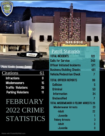 HomeLocalSusanville Police Department’s February Crime StatsSusanville Police Department’s February Crime StatsThu, March 10, 2022SHARE NOW ×❮❯