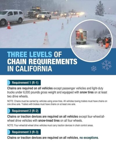 Winter Travel Safety Tips and Chain Requirements for California Mountains
