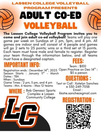 The Lassen Volleyball College Program wants to introduce to you Adult Co-Ed Volleyball!!
